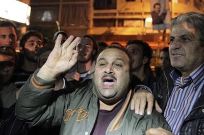 An angry protester shouts slogans during a protest in Beirut, Lebanon, Monday, Jan. 24, 2011. Large sections of the capital Beirut were tense and supporters of Lebanese caretaker Prime Minister Saad Hariri took to the streets. Sunni lawmakers have called for a 'day of rage' throughout Lebanon Tuesday to protest gains by the Shiite militant group Hezbollah. Supporter of Lebanon's caretaker Prime Minister Saad al-Hariri carries a banner during a demonstration calling for Hariri to remain as prime minister and form a new government, in front of the grave of Lebanon's assassinated former prime minister Rafik al-Hariri, in downtown Beirut January 24, 2011. Lebanese supporters of caretaker Prime Minister Saad al-Hariri carry a banner with his picture as they shout slogans in front of burnt tires during a protest in Tripoli, northern Lebanon, calling for him to remain as Prime Minister and form the new government, January 24, 2011. Lebanese soldiers stand in front of burnt tires lit by supporters of Lebanon's caretaker Saad al-Hariri and blocking a main road from southern Lebanon to Beirut during a protest calling for Hariri to remain as Prime Minister and form the new government, at Barja area, southern Lebanon January 24, 2011Supporters of Lebanon's caretaker Saad al-Hariri carry a banner during a protest calling for Hariri to remain as Prime Minister and form the new government, in front of the grave of Lebanon's assassinated former prime minister Rafik al-Hariri in downtown Beirut, January 24, 2011.Supporters of Lebanon's caretaker PM Saad al-Hariri carry banners during a protest calling for Hariri to remain as Prime Minister and form the new government , January 24, 2011.