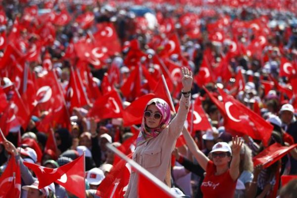 The parade ground, built to hold more than a million people, was overflowing, with the streets of surrounding neighborhoods clogged by crowds. One presidency official put the numbers at around five million and the event was broadcast live on public screens at smaller rallies across Turkey’s 81 provinces.