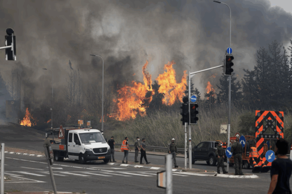 TV footage showed fires burning along the main Route 1 Jerusalem to Tel Aviv highway and people abandoning cars and running away from the flames as thick smoke billowed over the surrounding hilltops.