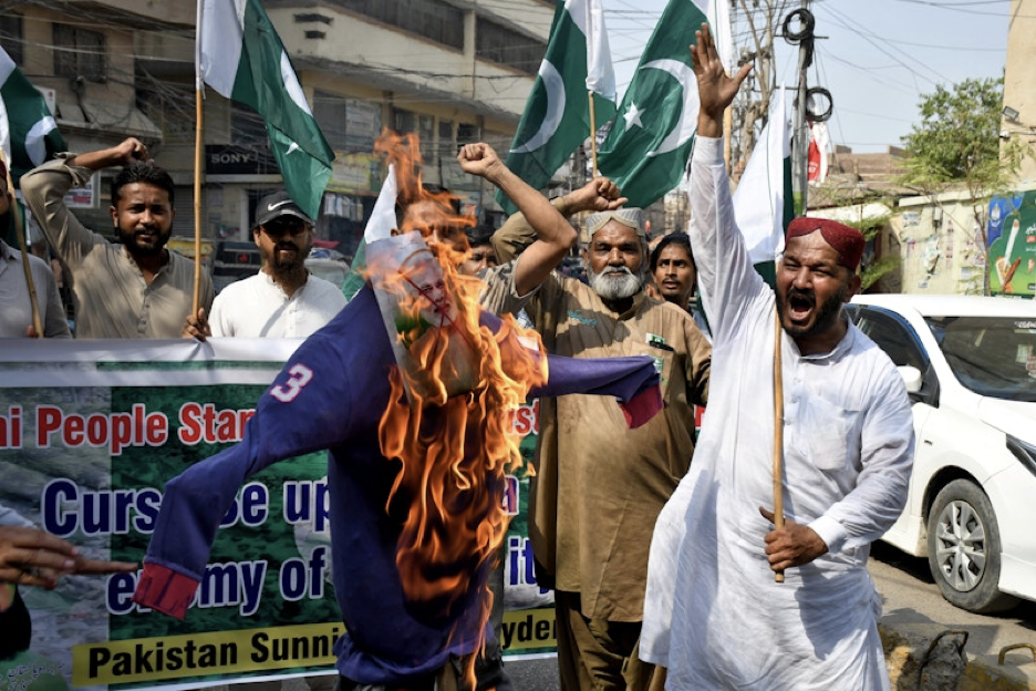 Demonstrators burn an effigy during an anti-India protest following India’s military strikes on Pakistan, in Hyderabad, Pakistan, May 7, 2025. REUTERS/Yasir Rajput