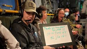 In a photo taken on the military helicopter and released by Israel, Alexander held a sign reading: “Thank you, president Trump.”