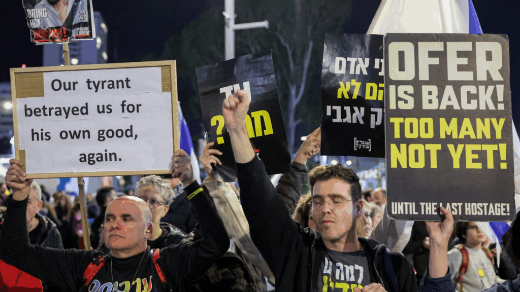 Israelis have taken to the streets across the country in recent days in some of the largest protests since the war in Gaza began in 2023. They’re demanding a deal between Israel and Hamas to release all remaining hostages