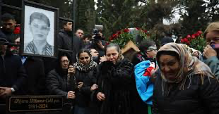 People mourn at the grave of flight attendant Hokuma Aliyeva during the funeral of the crew members of Azerbaijan Airlines Flight J2-8243 that crashed near the Kazakh city of Aktau, in Baku, Azerbaijan December 29, 2024. REUTERS/Aziz Karimov/File Photo