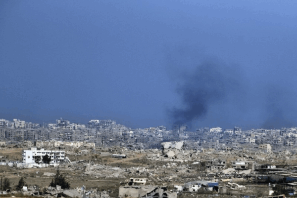 Smoke rises from an airstrike on a target in Gaza on Wednesday, as seen from southern Israel, hours before the conflict entered a new phase as the Israel Defense Forces launched a ground offensive to take over Gaza City. Photo by Jim Hollander/UPI