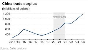 China’s trade surplus surged to a record of almost $1.2 trillion in 2025, the government said Wednesday, as exports to other countries made up for slowing shipments to the U.S. under President Donald Trump’s onslaught of higher tariffs.