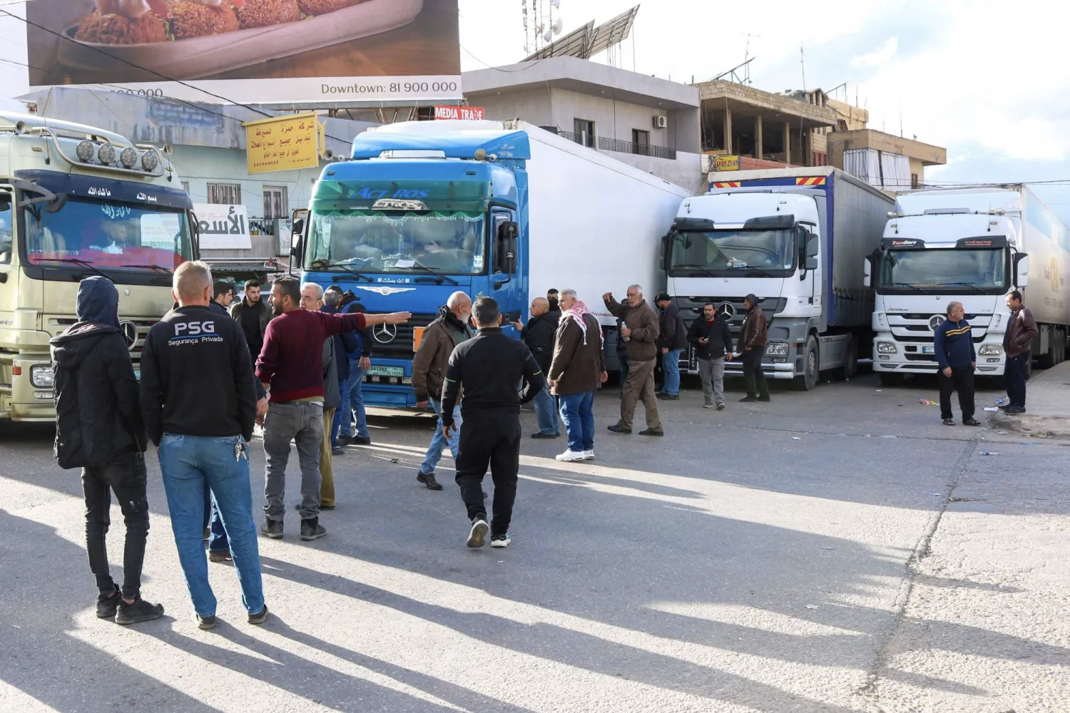 Dozens of trucks unable to enter the country were lined up on the Lebanese side of the Masnaa border crossing on Tuesday, an AFP photographer saw.
