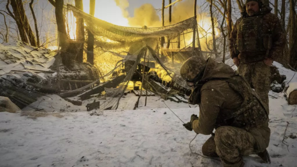 File photo- Ukrainian soldiers fire at Russian positions on the front line in the Kharkiv region of Ukraine, Wednesday, February 18, 2026. © Andrii Marienko, AP