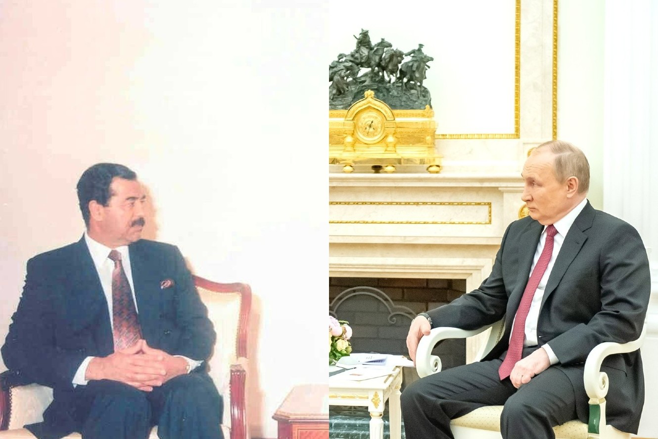 Composed photo- Saddam Hussein and Vladimir Putin