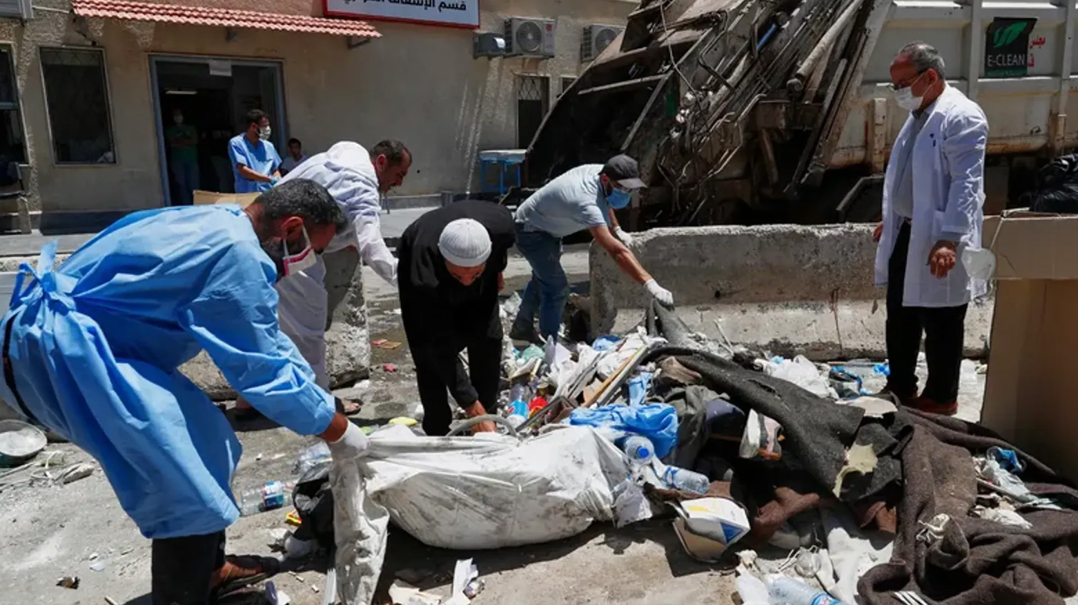 File photo : Workers clean the National Hospital following sectarian clashes in the Druze-majority town of Sweida, Syria, on Friday, Jul.25, 2025. patients in beds were shot at by Syrian security forces. 1,653 Killed in the Sweida Massacre, Including 429 Executed by Defense and Interior Forces according The Syrian Observatory for Human Rights (Photo: AP)