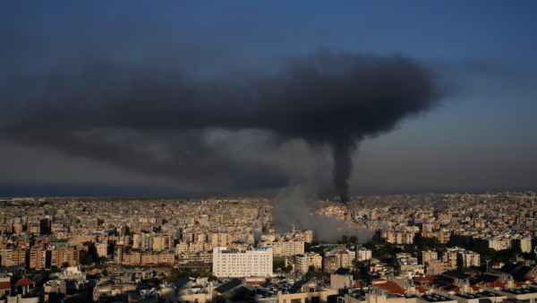 Smoke rises from the site of an Israeli airstrike in Beirut’s southern suburbs © Ibrahim Amro, AFP